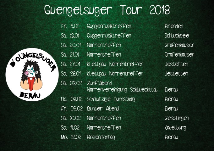 Der Tourplan für 2018 steht und den ersten Auftritt in Reckingen bei den Schnörri Plätzer haben wir ja schon lange hinter uns.